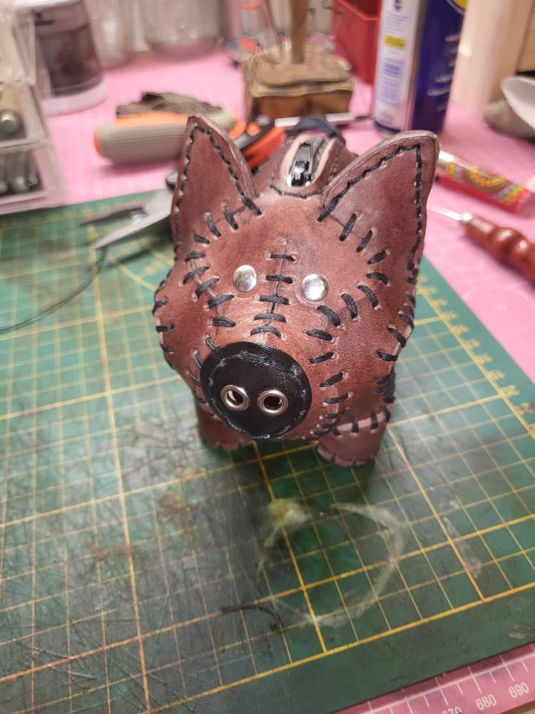 This is a digital pattern in the form of a 2 page PDF file meant to aid you in creating a leather piggybank coin purse as shown in the pictures.