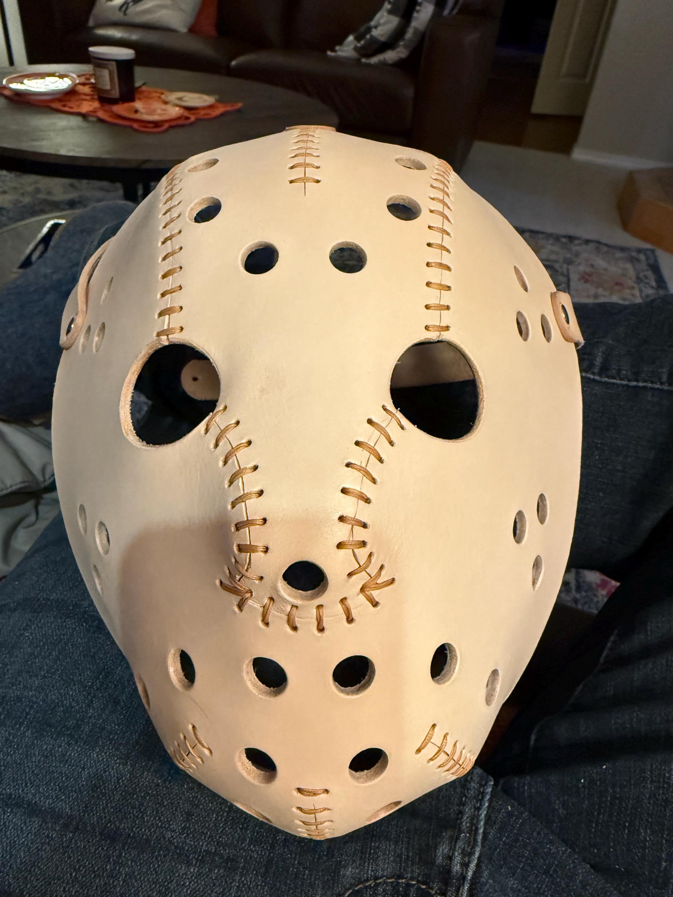 This is a digital pattern in the form of a PDF file meant to aid you in creating a creepy leather Jason mask as shown in the pictures.